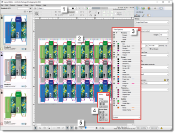 Figure 9.37: The layout panel with different products placed in an offset job