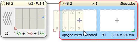 Apogee Impose enables you to drag and drop Fold Sheets onto a Press Sheet so you can rearrange the imposition interactively.