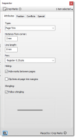 The settings window appears (e.g. for a Page Crop mark) and in the bottom right corner you can see how the mark was placed.