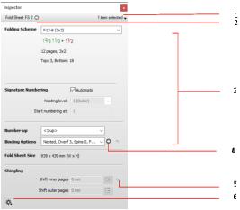 To view the Inspector, click in a node or a component (Page, Fold Sheet, Press Sheet, Mark, etc.), and then click the Inspector button in the toolbar