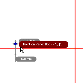 2 Hover over the component you want to start your measurement from, for example a Page, Mark or Rule-up, but locate a hot spot (blue dot) before clicking to fix the first reference point.