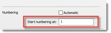 In the Numbering panel, you see that the numbering is set to Automatic as default. Clear the Automatic check box.