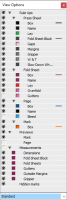 The View Options palette in the Press Sheet View is used to show and hide the various rule-ups. For example, this allows you to inspect overlapping rule-ups.
