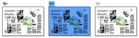 If a page or flat is made up of a series of , this is indicated by four (or more) small colored icons to the right. If you select the page or flat, the individual separations are displayed in the Separations pane (see