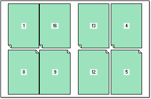 | | The orientation of a page may vary in an imposition layout. The position of the corner fold tells you where the top of the page is. |
