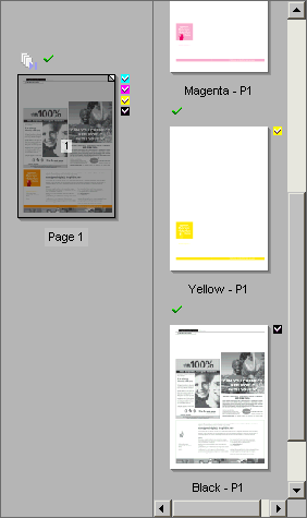 This pane displays thumbnails of each of the for the page or you select in the Job Layout pane. Double-clicking a thumbnail launches the appropriate viewer. For data, this is your PDF Reader; for raster data, this is Raster Preview.