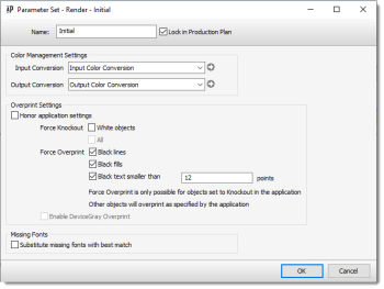 This dialog box allows you to view or edit the Render settings of the PDF Render Task Processor. These settings define how color management is applied to the incoming data.