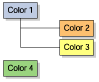 You can map a color to another by dragging it to the color. You can only do this up to one mapping level. Mapped colors appear indented below the color they are mapped to.