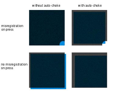 •Auto-choke is always active. In cases involving a rich black (solid black with one or more support colors) that shares a common edge with white, a reverse trap will be created.