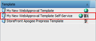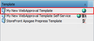 When you choose File > New from Templates you will see the new template has been added to the list and it is indicated with two icons: the WebApproval icon and the Apogee icon.