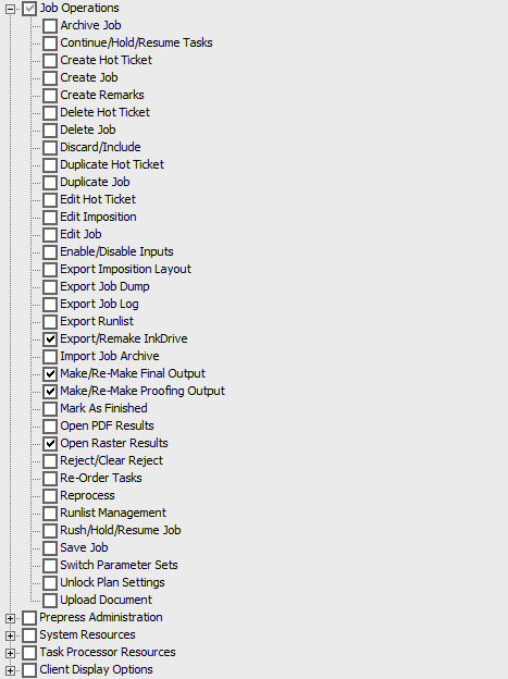 You have access to the main job commands (except Edit Imposition) and to selected Task Processor resources.