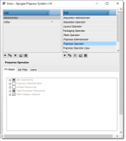 Opens the Job Filter where you can fine-tune the privileges even further by specifying a filter to show/hide certain jobs in the Job List for the selected role. For example: user John has the role of Prepress Operator Plant A and can only see jobs whose Job Name contains ‘Plant A’. User Bill has the role of Prepress Operator Plant B and can only see jobs whose Job Name contains ‘Plant B’. See