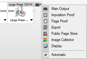 ![]() | Imposition Proof: An optional flow which may be added to the Main Output flow, and is used for output to an imposition proofing device. | |