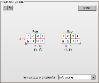 If you have an existing Fold Sheet that you want to emulate, the Page Assignment method is used to create a scheme. You simply assign page numbers in the cells using the two buttons and select a binding edge to preview the page orientation of the Fold Sheet.