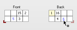 | | Cursor button for typing the page numbers on the Front or Back of the Folding Scheme; the number for the other side (Front or Back) is added automatically |