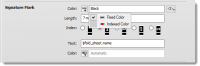•Text: Selects the text to print. You can combine the literal text with variables. The default value is $fold_sheet.name. This field is disabled when the Index is set to None.