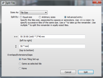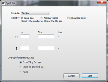 In the Overlaps/Extension/Gaps section you can choose how these settings are applied to the split tiles: