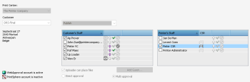 The Printer Company administrator can create Print Buyer companies for customers with whom they want to collaborate using the WebApproval and/or PrintSphere services. They can also create users for these Print Buyer companies and also for their own Printer Company. These companies and their users appear in the printer’s workflow software and can be selected when creating jobs. Printer Company users with the CSR role have similar rights for managing Print Buyer companies but limited rights for their own Printer Company.