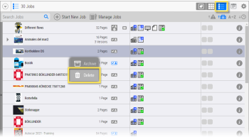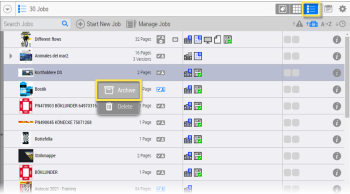 The jobs remain visible in the lists and the Archived status icon is displayed, after the Archive command has been performed: