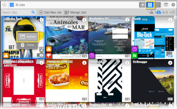 •In the Job Tiles view, the Archived status icon is displayed in the left corner.