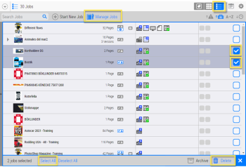 The Manage Jobs feature allows you to archive and delete a job or multiple jobs.