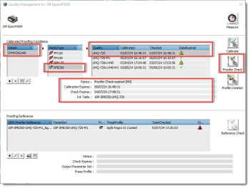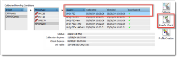 9 Select your recently calibrated quality and click the Proofer Check button.