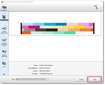 NOTE: This is only available when the selected paper type is loaded, and when the quality is either calibrated or the proofer check expired.