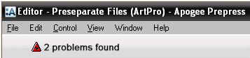 If there are problems with a job you are creating or editing in the Ticket Editor, you will see the following type of message in the Tab Area: